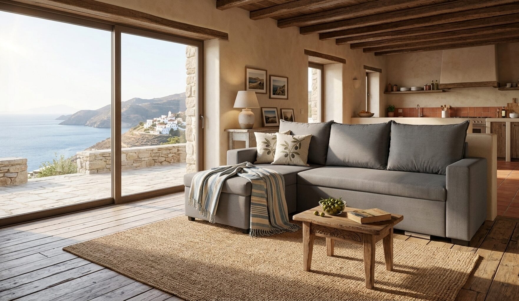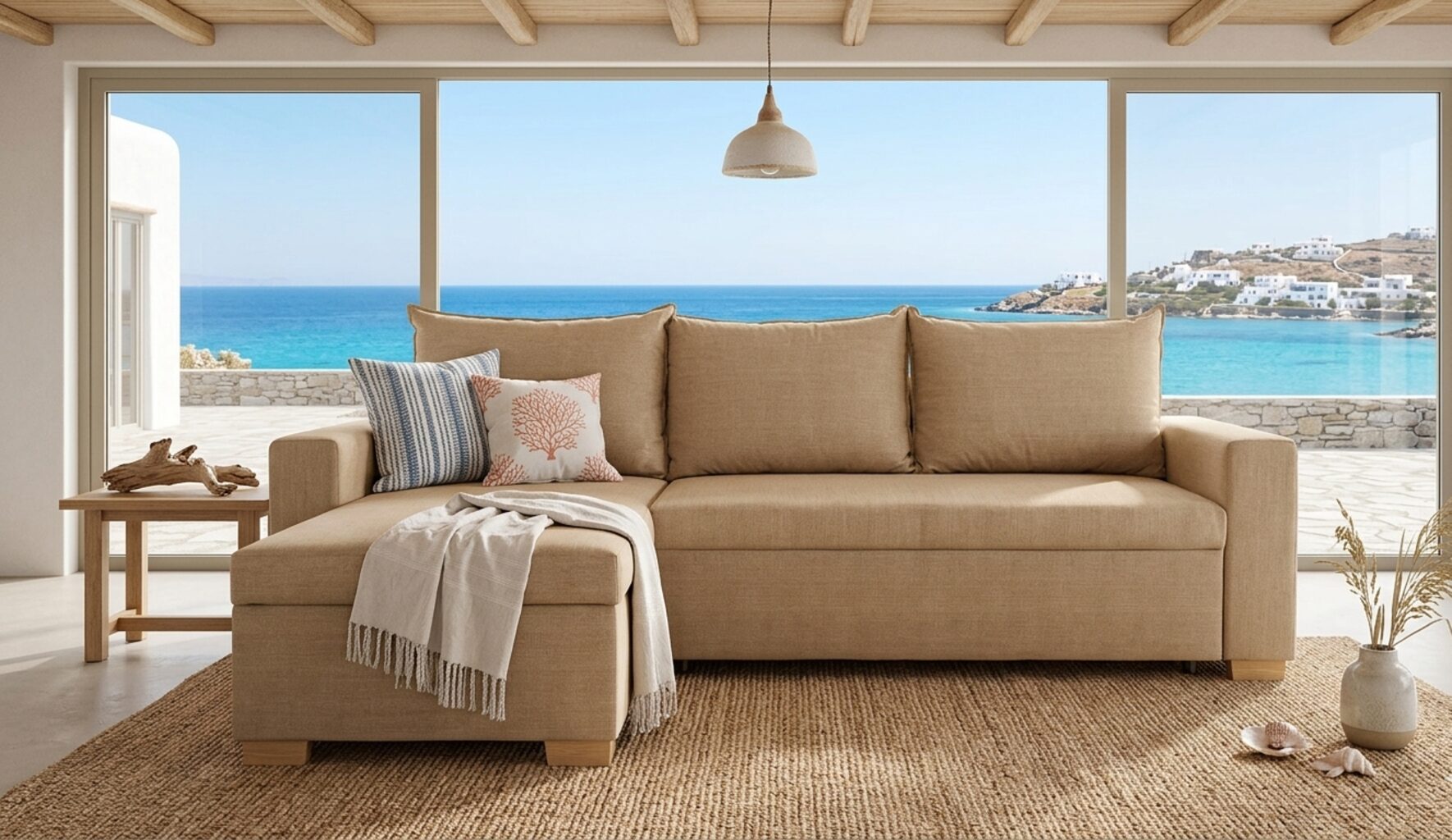 - Minimal Σχεδιασμός με Μπράτσα: Η παρουσία μπράτσων προσφέρει εξαιρετική στήριξη και χαλάρωση, είτε κάθεστε είτε τον χρησιμοποιείτε ως κρεβάτι.