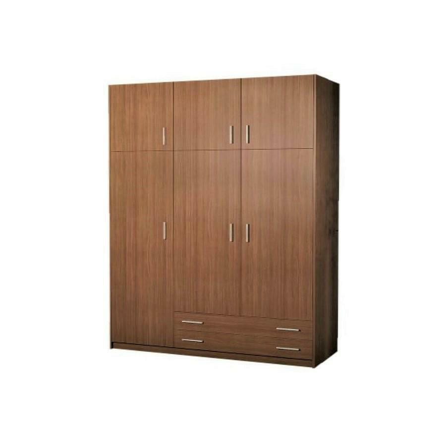 Ντουλάπα ελληνικής προέλευσης, με 2 συρτάρια, 1 ράφι και μία μεταλλική βέργα στο μονόφυλλο, και μια βέργα ακόμη στο δίφυλλο για το κρέμασμα ρούχων. Κατασκευασμένη από μελαμίνη υψηλής ποιότητας και αντοχής, αποτελεί ένα απαραίτητο έπιπλο στο υπνοδωμάτιο για την καλύτερη οργάνωση των ενδυμάτων σας.